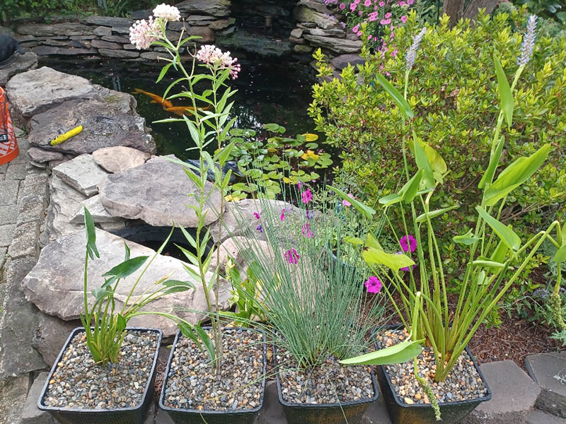 These plants grow along the edges of your pond or in shallow water, adding texture and color to the shoreline.